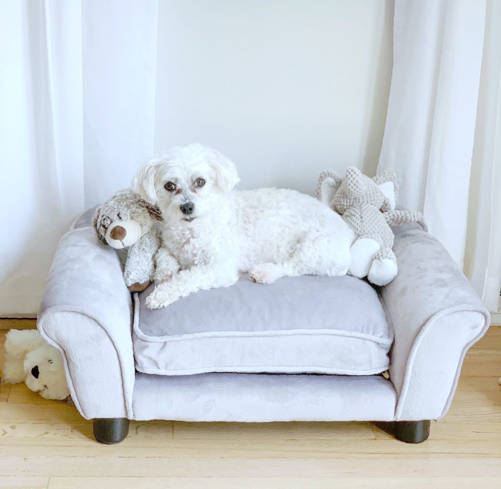 Every king needs a throne & I found the perfect one for Capone at Home Goods. I have seen pet couches at various furniture stores & they can be expensive. I found this one at Home Goods for less then $100. It is such nice quality & matches our living room furniture perfectly. If you are looking for a couch for your furry friend check Home Goods. I also get Capone a lot of toys, blankets & clothes there. They have so much cute things to choose from for your pet & at great prices.